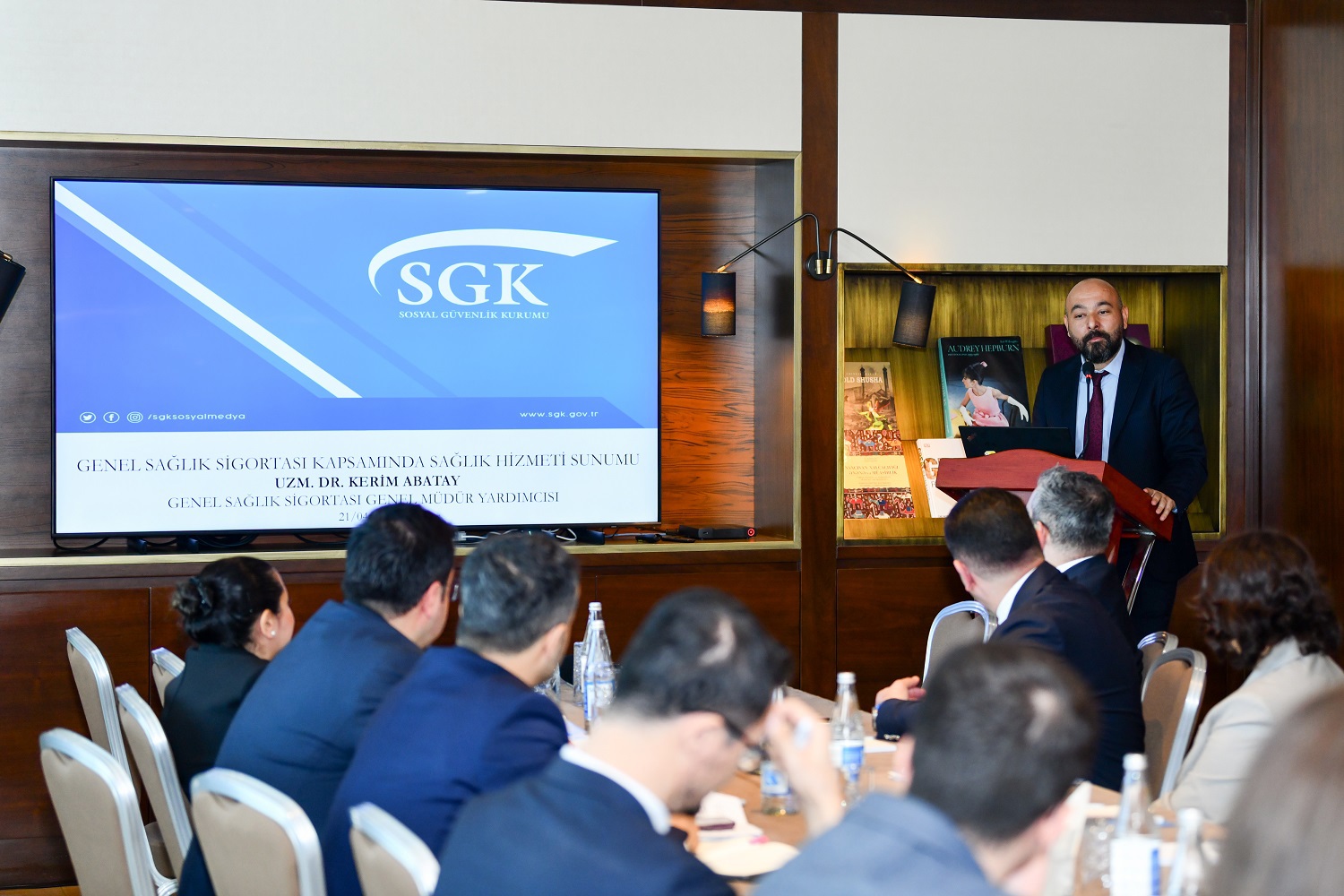 Azerbaycan İcbari Tıbbi Sigorta Kurumu Başkanı Zaur Aliyev ise konuşmasında, “Kurumlar olarak çok uzun zamandır birlikte çalışıyoruz. Mutabakat Zaptı sebebi ile birbirimizden öğrenmeye çalışıyoruz. Azerbaycan olarak Türkiye’den daha genciz. Dört senedir sağlık sigortası uyguluyoruz. Türkiye’nin bu konudaki tecrübeleri bizim için önemlidir.” dedi.